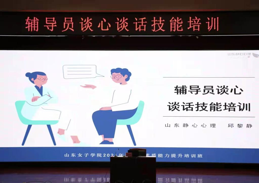 2021年10月15日,学生工作处邀请山东静心心理工作室创始人、首席咨询师邱黎静作辅导员谈心谈话技能培训。学校全体辅导员和来自附近兄弟院校的辅导员参加了培训。