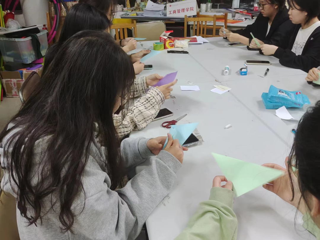 为加强学生之间的有效沟通,体会沟通过程中单向与双向、封闭与开放、盲目与探索的区别,增强学生的沟通表达能力,工商管理学院于4月13日在党团活动室举办“我说你剪”小游戏。