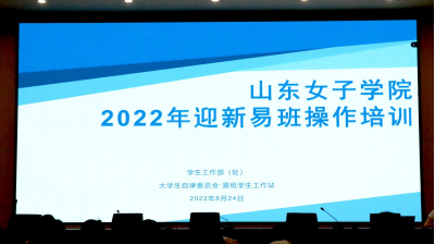8月24日,学生处在求真楼一楼报告厅召开会议,会议主题是《山东女子学院2022年迎新易班操作培训》,会议主持人由于杨老师担任,与会人员包括各学院辅导员及班助代表。