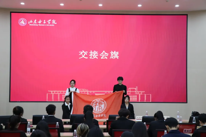 接着进行交接会旗,旗帜的传递象征着责任与传承,标志着校自律会·易班工作站将由新成员开启新征程,续写新篇章。