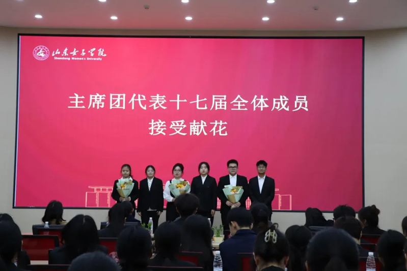 随后,主席团代表十七届全体成员接受献花,这是对他们过去一年工作的肯定与感谢。